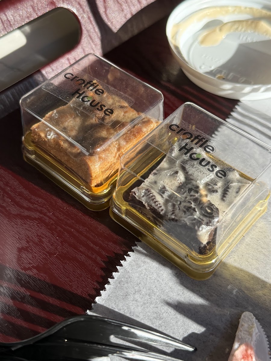 The blueberry cream cheese croffle had that perfect sweet-tart balance the cream cheese gave it a velvety richness while the blueberries added bright bursts of flavor. The strawberry whipped cream croffle, on the other hand, was light and dreamy, with fresh strawberries and airy cream layered over the caramelized crunch of the croffle itself. What makes these pastries special is the croffle base a clever fusion of the French croissant and the Belgian waffle. First popularized in South Korea around 2018, croffles are made by pressing laminated croissant dough in a waffle iron. The process caramelizes the butter and sugars, creating a golden, crispy crust while keeping those soft, buttery layers inside. It’s a pastry that carries both elegance and comfort, and Croffle House does it justice. Even through delivery, the textures held up beautifully the edges still crisp, the fillings still fresh. It felt indulgent yet balanced, and you could tell care went into making sure every detail traveled well.